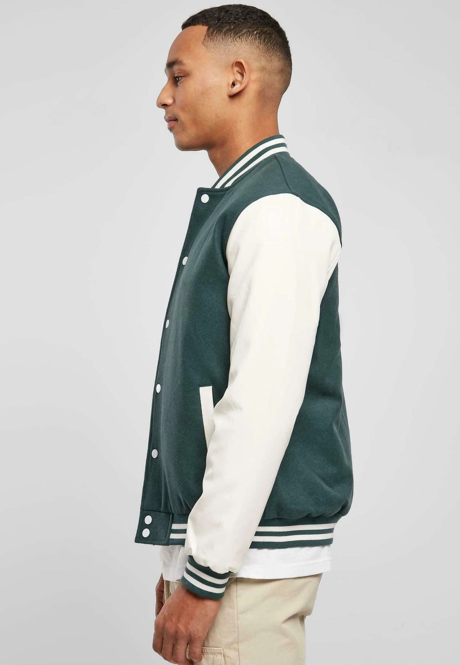URBAN CLASSICS Oldschool College – Blouson Bomber – Bottlegreen White